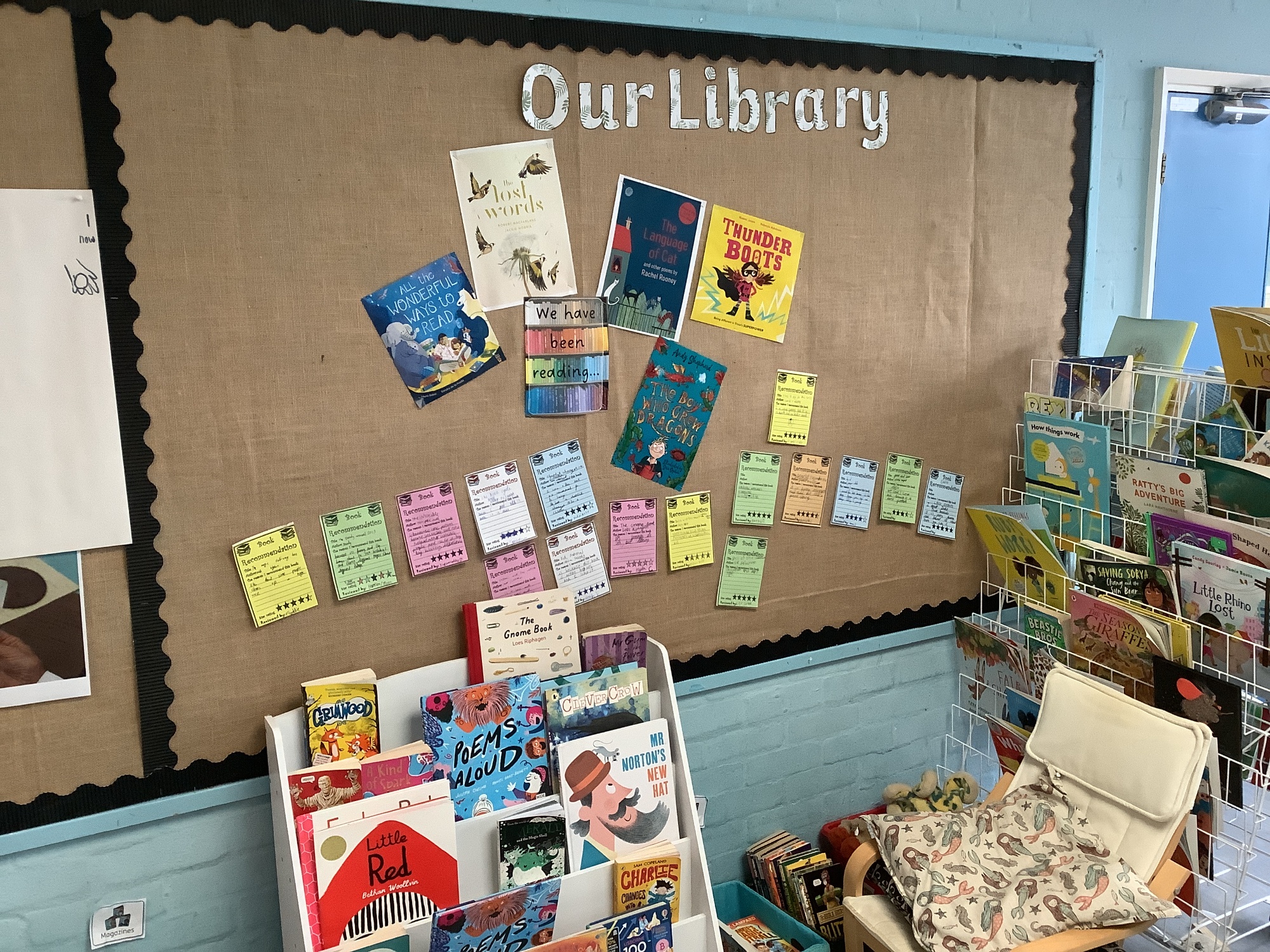 Every classroom also has an inviting library (or book corner), stocked with carefully chosen texts that link to learning and children’s interests.